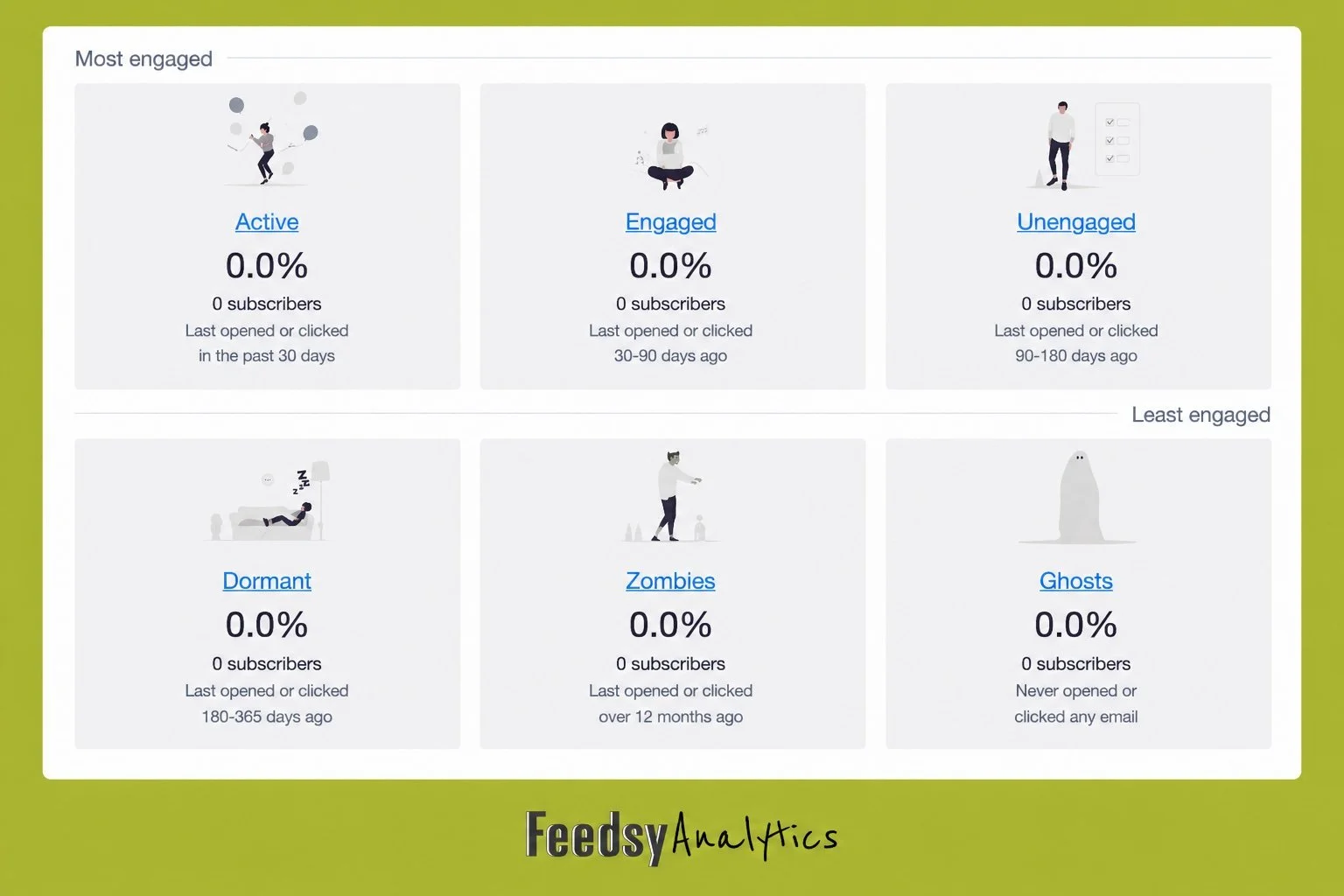 Quickly see which clients are active, engaged, unengaged, dormant, zombies or ghosts — with client names visible inside each segment.